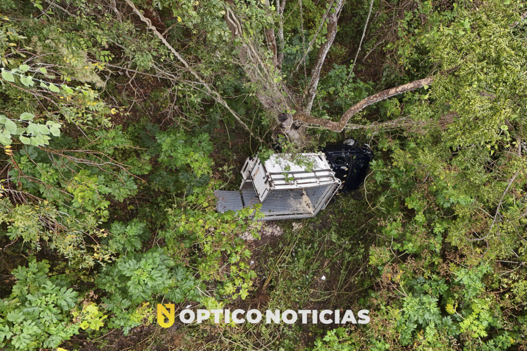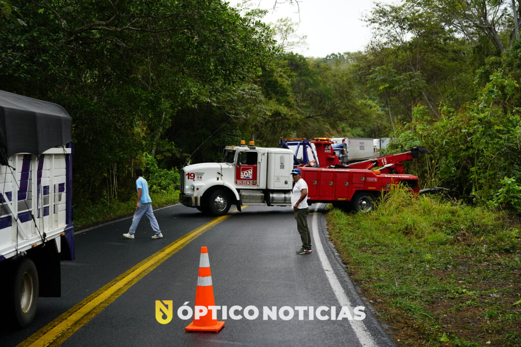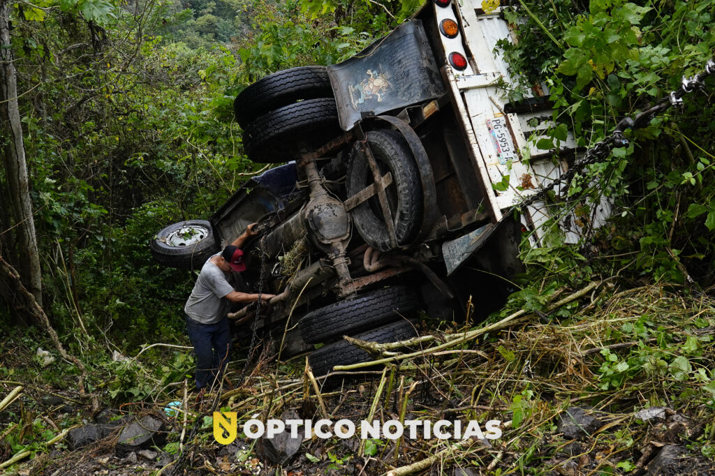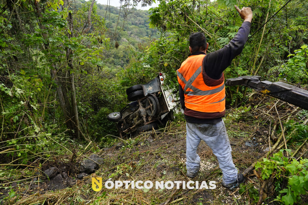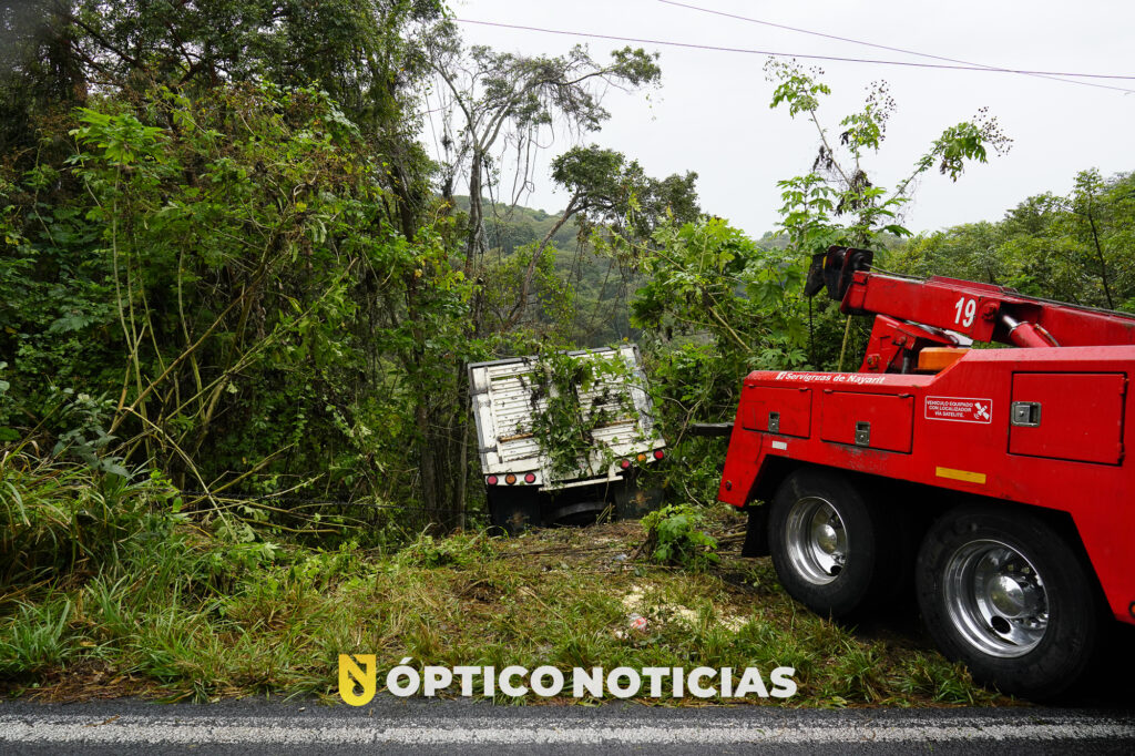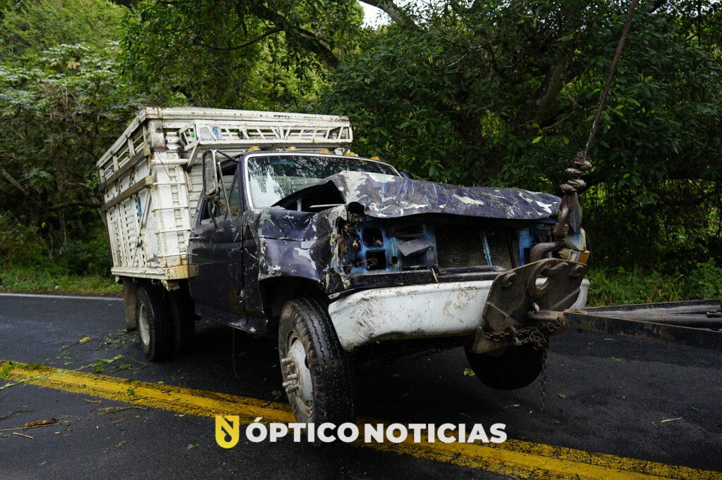 Testigos de los hechos refieren que personal de las grúas se encontraban retirando una de las unidades siniestradas, por lo que el trafico había sido interrumpido, por lo que el conductor de una camioneta Ford con redilas, que transportaba Maíz al salir de la curva se percata que el trafico esta detenido y al no poder frenar decide salir de la cinta asfáltica y termina por caer a un barranco, por fortuna resultando ileso.