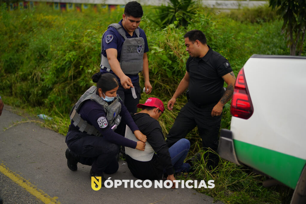 Paramédicos brindaron atención en el lugar al conductor, quien resulto lesionado de su hombro izquierdo.