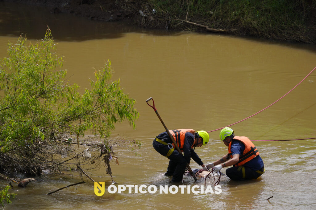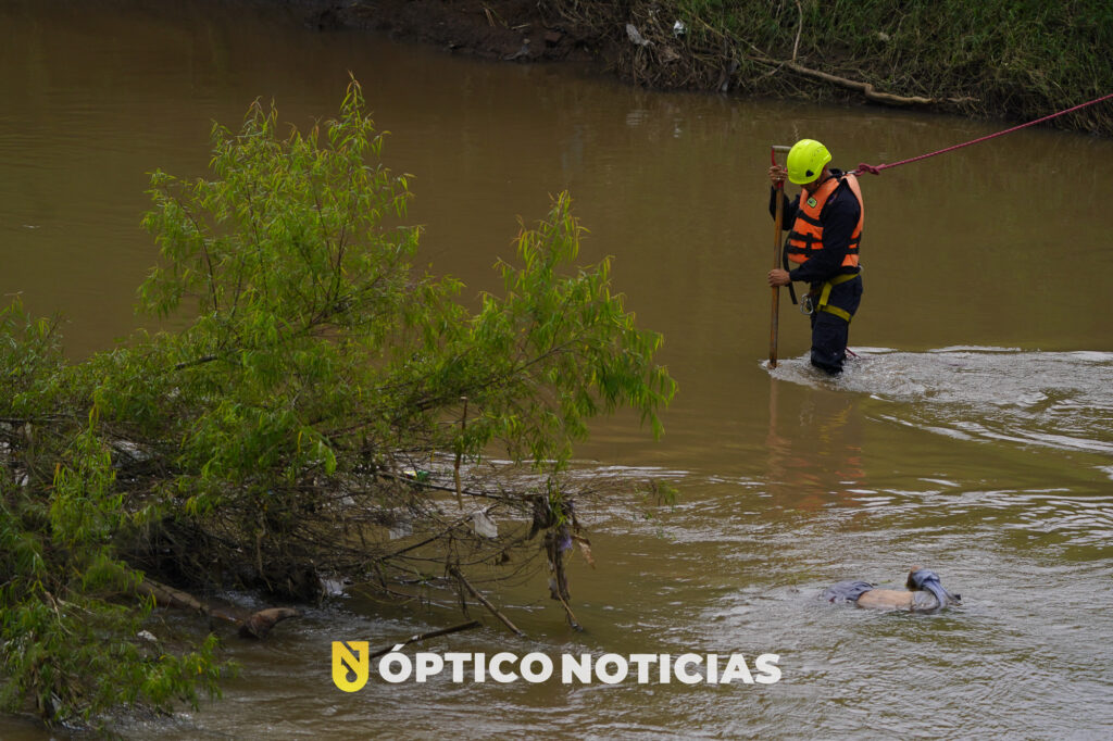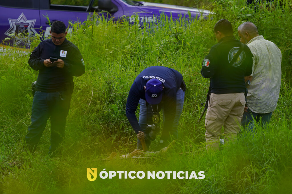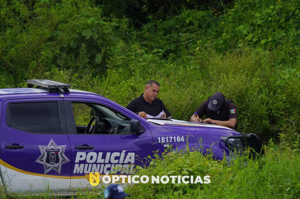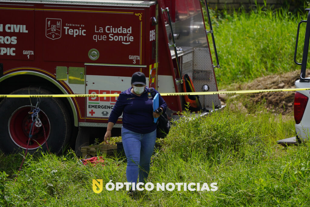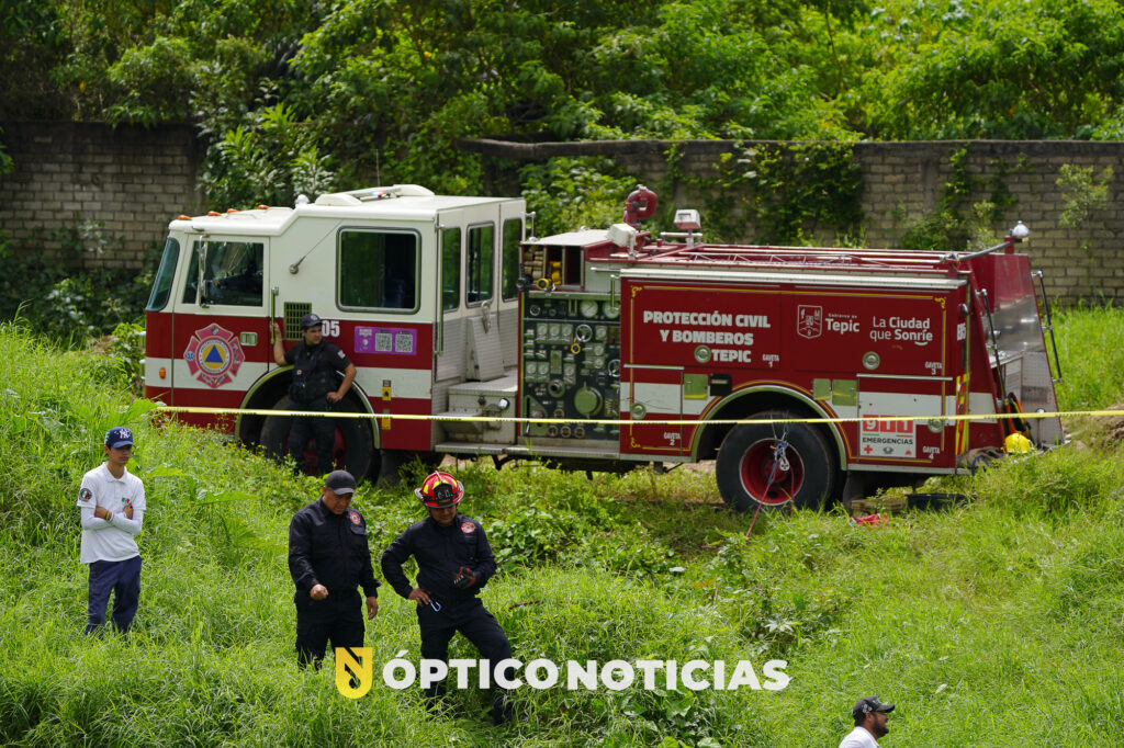 elementos de la policía municipal de la ciudad de Tepic, realizaron el acordonamiento de la zona para preservar la escena y dar espacio a los elementos de protección civil municipal para realizar el rescate del cuerpo, mismos que entraron al agua y con ayuda de algunas sogas, lograron sacar los restos de una persona de la tercera edad, misma que presentaba tres golpes sobre su espalda y uno mas en su frente.