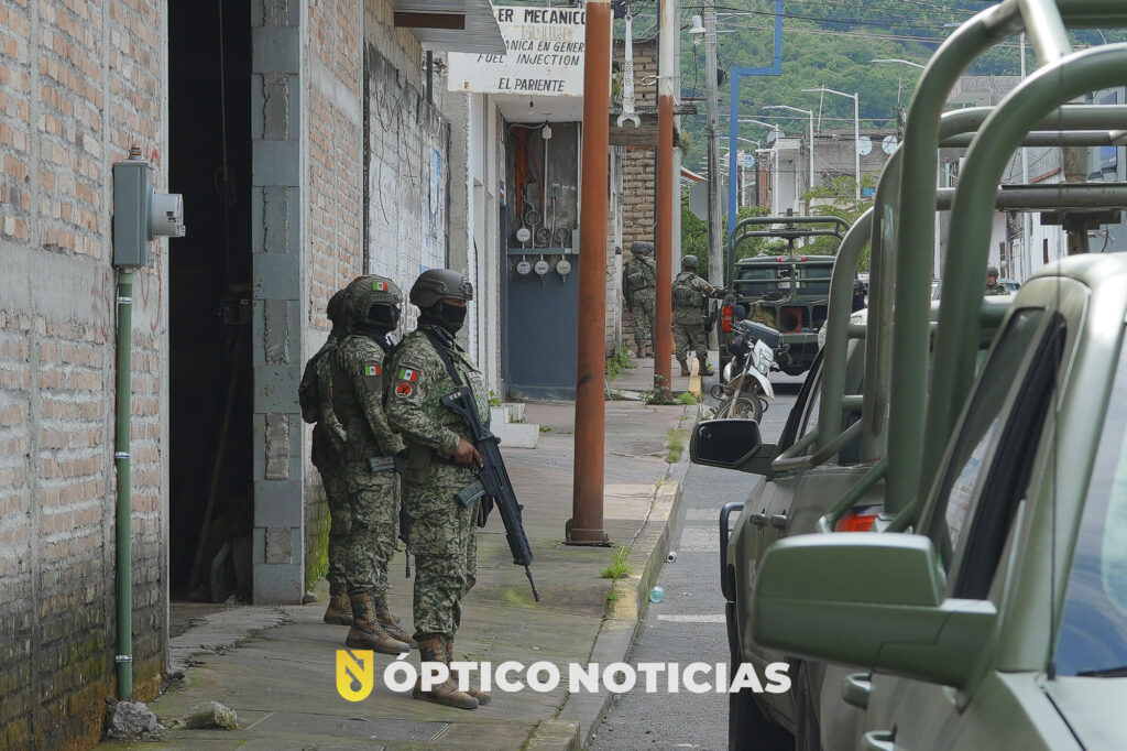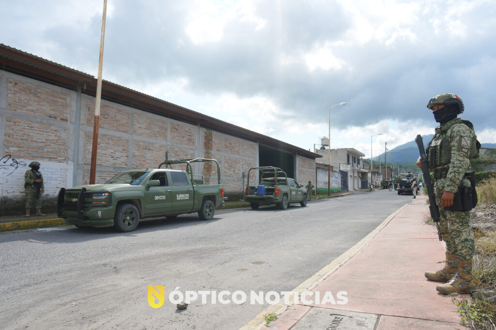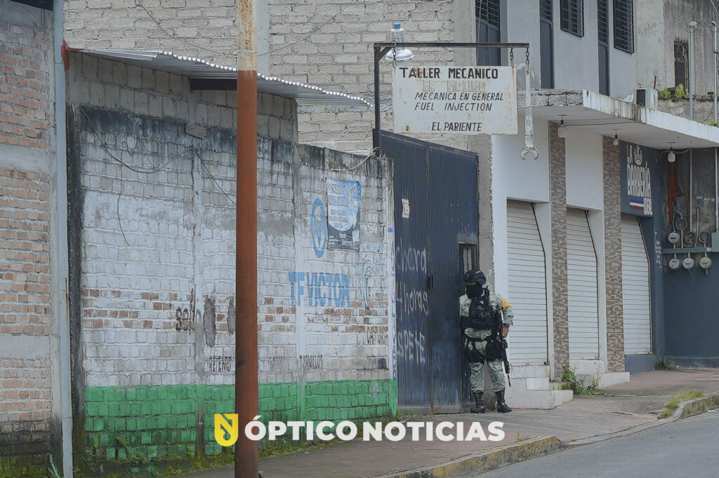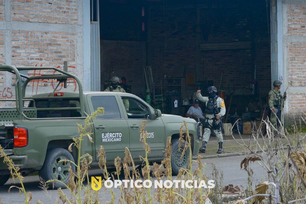 Elementos del ejercito mexicano en colaboración con guardia nacional, llevaron a cabo un cateo a un taller sobre la calle allende entre Veracruz y Morelia de la ciudad de Xalisco.