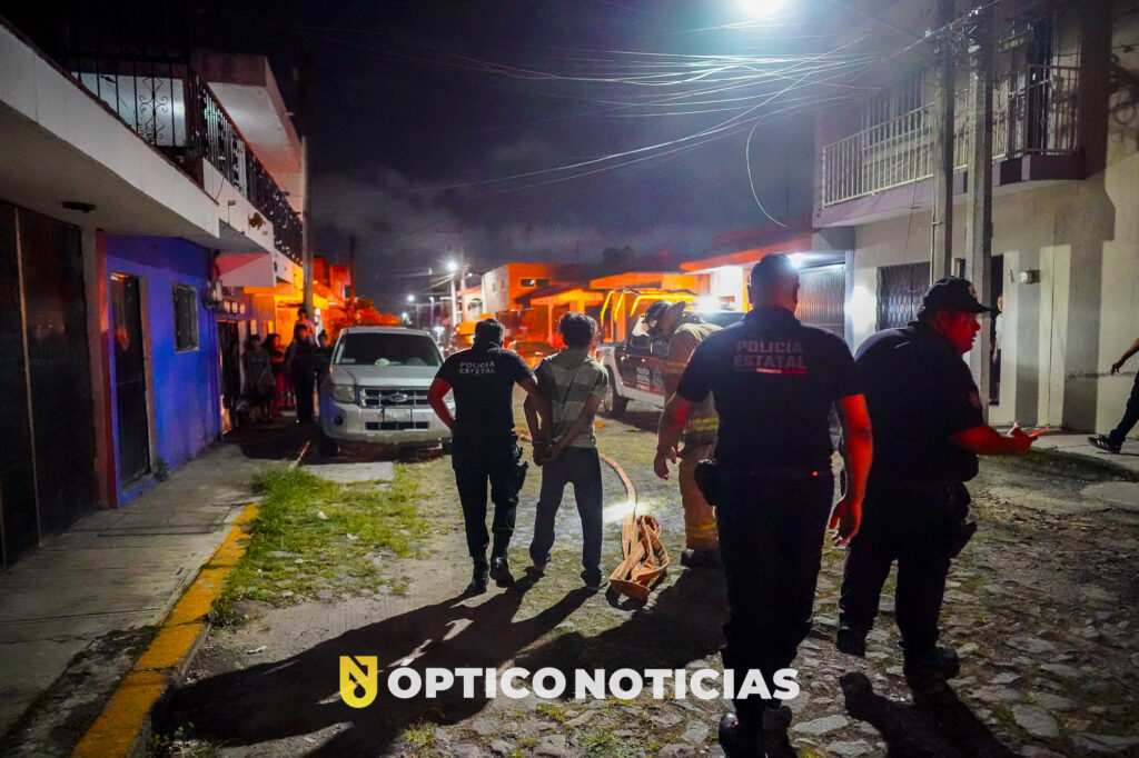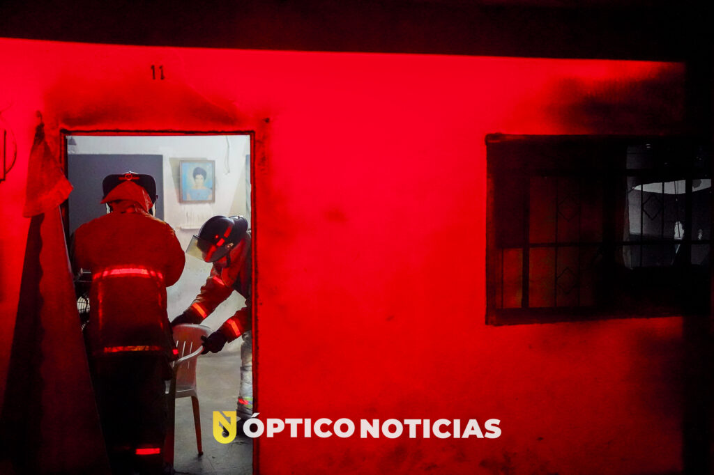 Al lugar acudieron elementos de bomberos del estado quienes al llegar al domicilio confirmaron la presencia del fuego y de cuatro sujetos forcejeando dentro de la habitación en llamas, por lo que de inmediato ingresaron a realizar su trabajo.