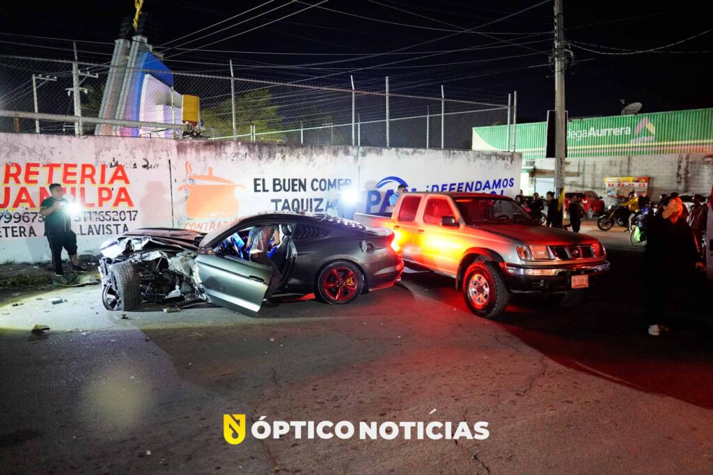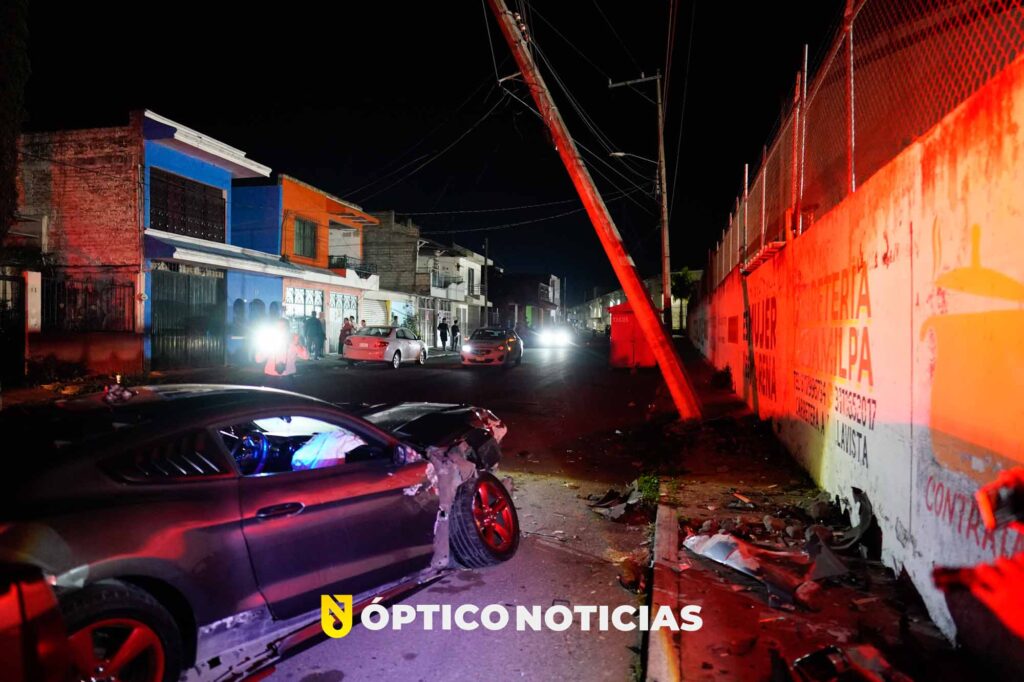 según testigos de los hechos un automóvil Ford Mustang conducía a exceso de velocidad por la calle 10 de abril con dirección a la avenida los sauces, cuando súbitamente pierde el control e impacta contra un poste de comisión federal de electricidad y posteriormente contra una camioneta Nissan frontier, que se encontraba estacionada en el sitio dañándola en su parte trasera.