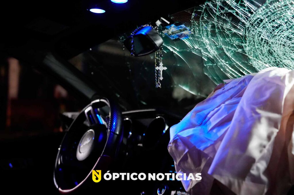 después del impacto, conductor y acompañante se dan a la fuga, no sin antes quitar el equipo de sonido del Mustang.