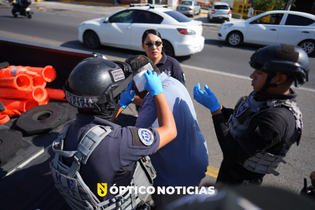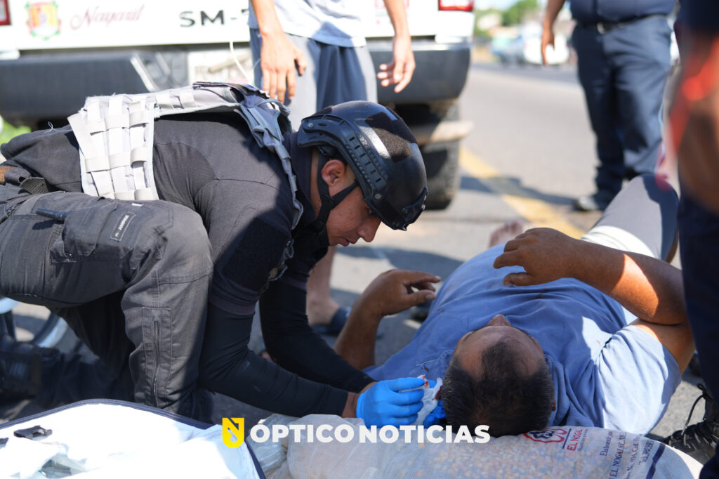 Tras el incidente y de manera inmediata, los elementos pidieron apoyo para el hombre lesionado y minutos más tarde, paramédicos motociclistas del grupo médico táctico de la policía estatal, arribaron a prestarle los primeros auxilios.