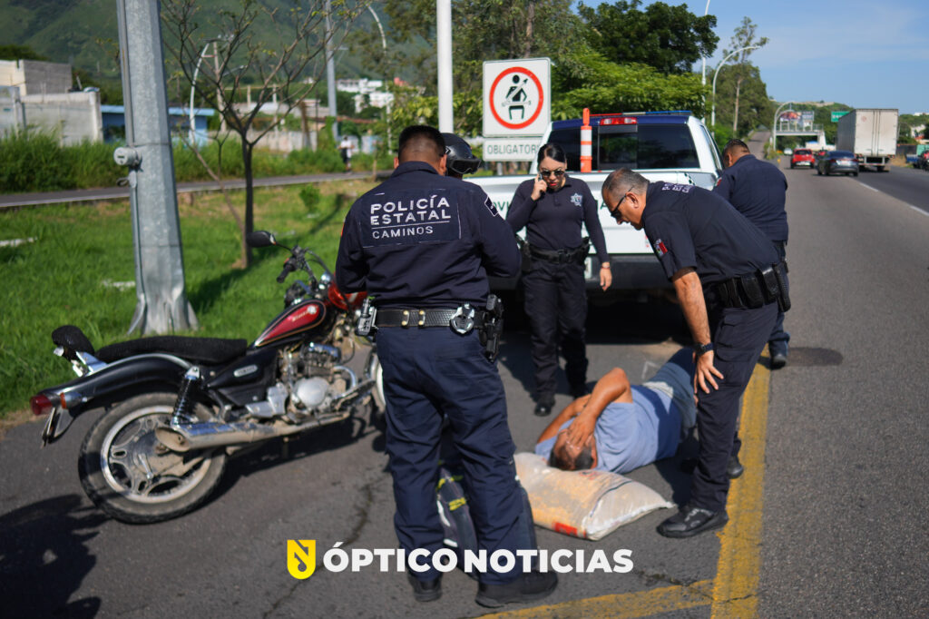 Motociclista resulta lesionado en el libramiento de Tepic, tras impactarse contra una unidad de movilidad.