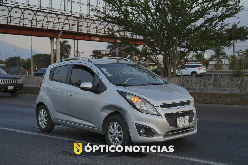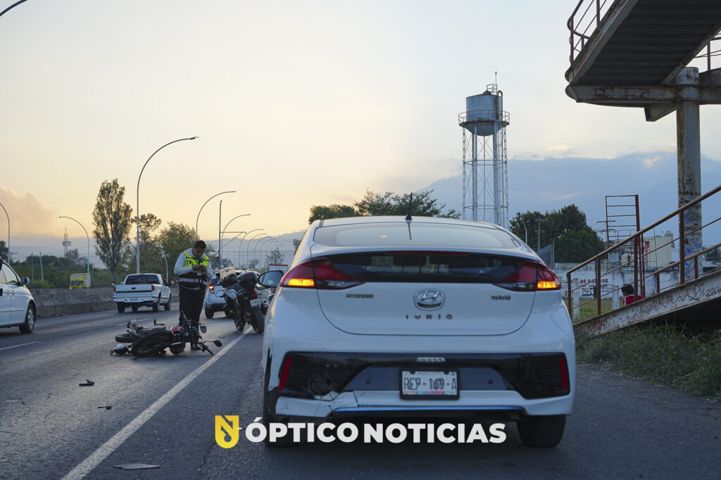 La tarde de este viernes 27 de febrero, se registró un incidente vial sobre el libramiento carretero de tepic a la altura de la colonia los sauces, en el carril con dirección a Mazatlán, donde un motociclista impactó a un automóvil hunday blanco en su parte trasera mientras que este se encontraba detenido en el acotamiento, ocasionando que el motociclista se tambaleara hacia el libramiento y terminara impactando sobre el salpicadero frontal derecho de un chevrolet spark en color gris, para terminar cayendo al suelo.