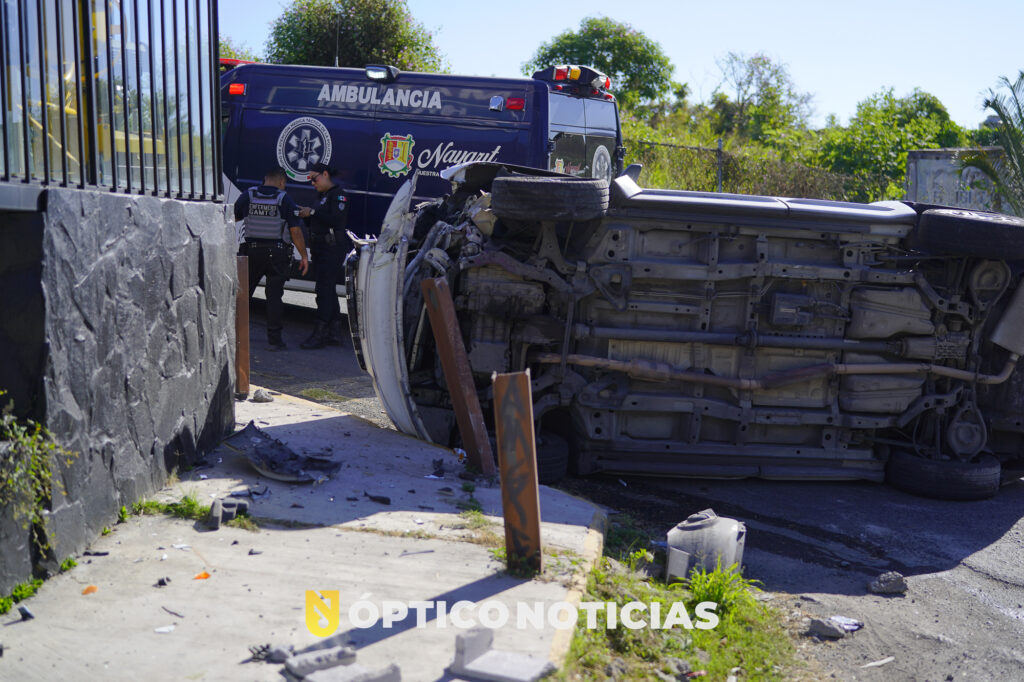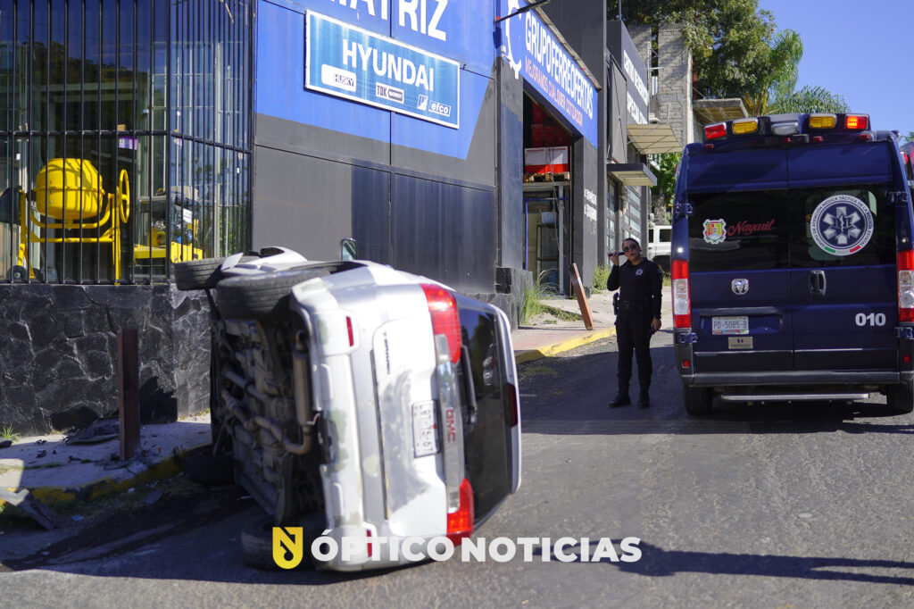mujer vuelca camioneta en el libramiento de tepic.