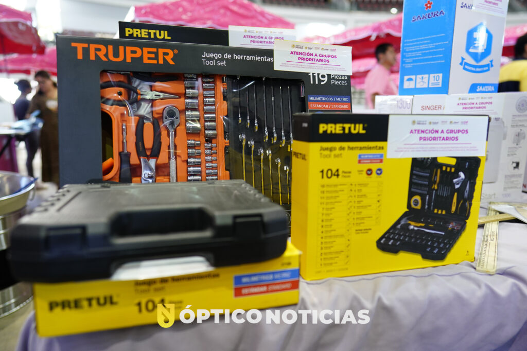 En el acto protocolario, se entregaron carritos de tacos, carritos de hot dogs, triciclos, kits de cocina económica, kits de lonchería, kits de costura, kits de cortes de cabello, kits de tamales, kits de herramienta de trabajo, refrigeradores, hornos para pan, congeladores y kits para chicharrones, que servirán para fomentar el auto empleo con el fin de mejorar la economía de las familias beneficiadas.