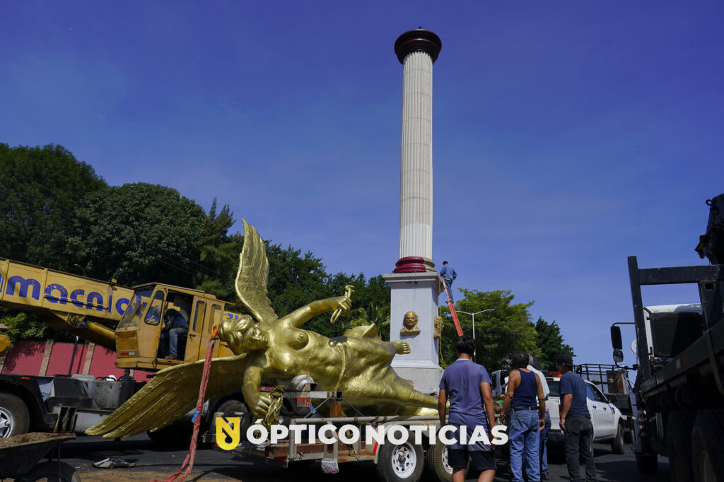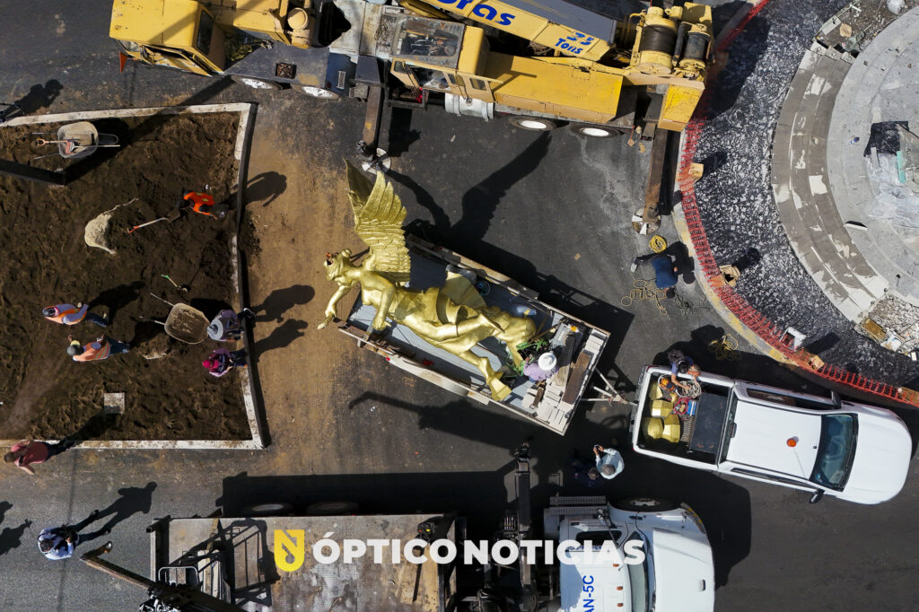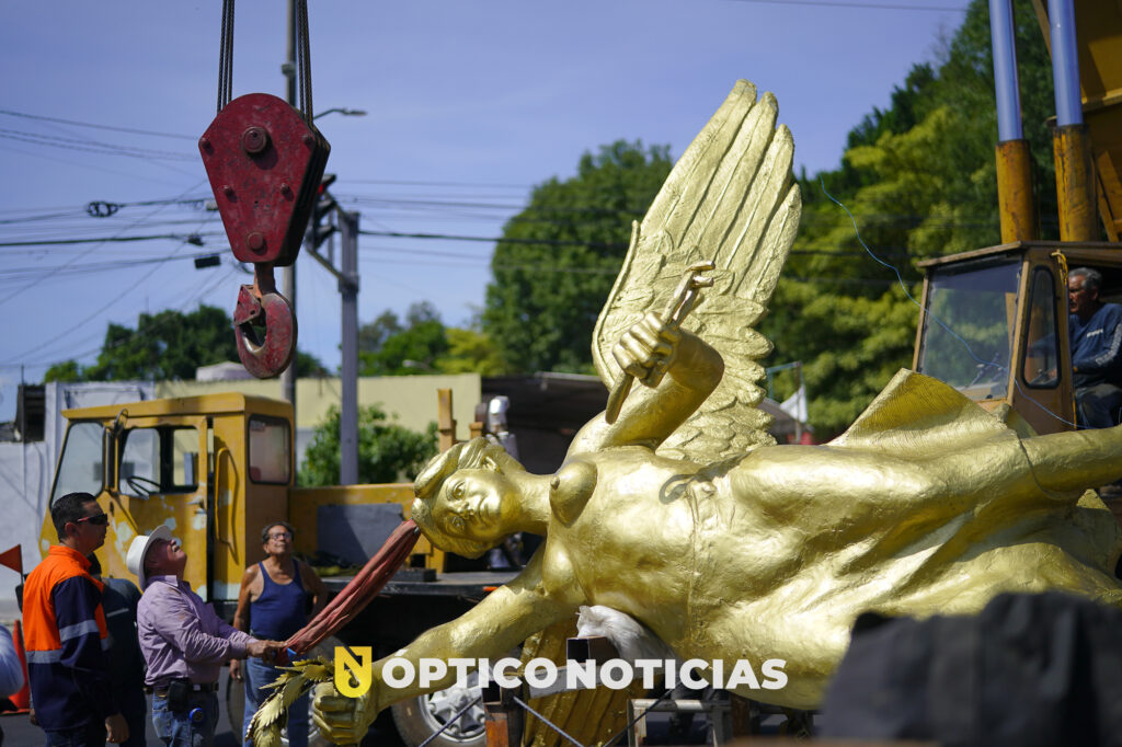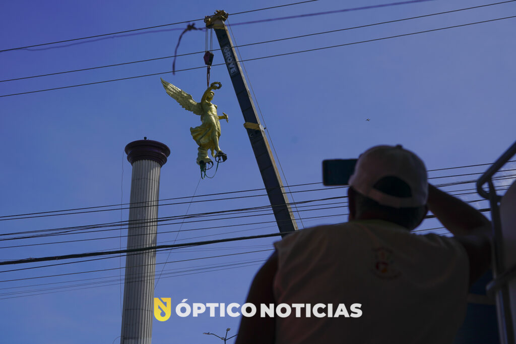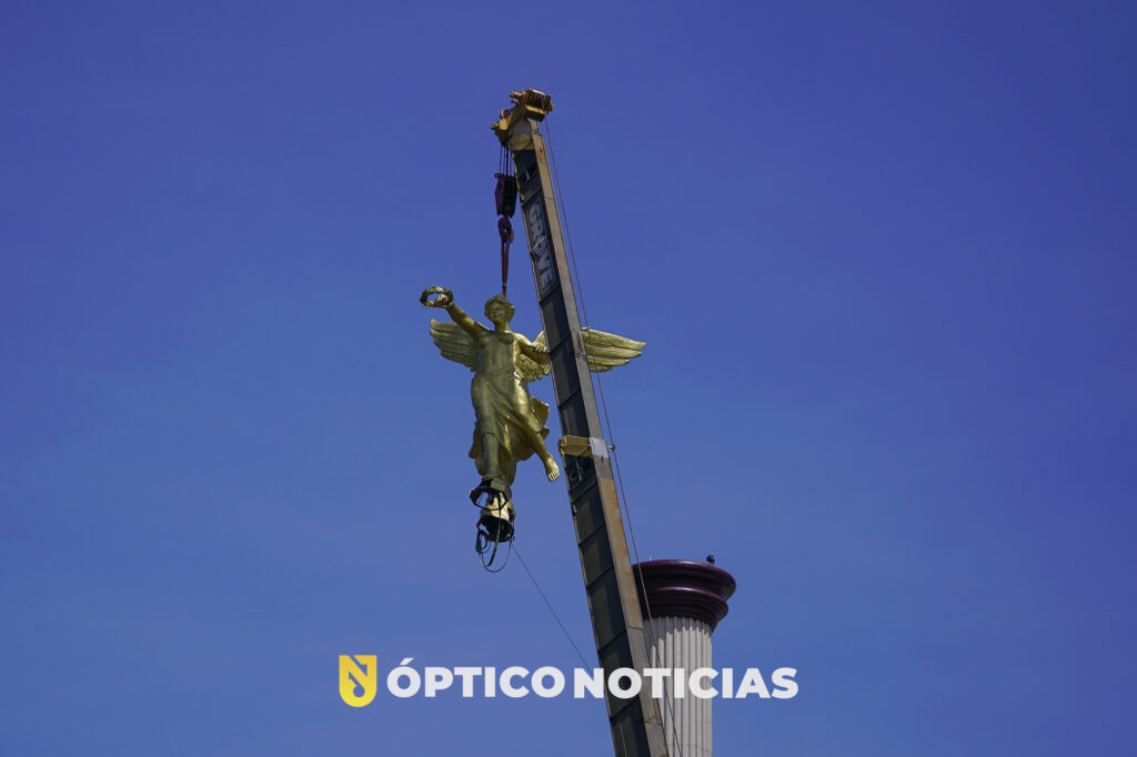 La mañana de este viernes 12 de septiembre, ante la mirada de automovilistas y el cansancio de algunos trabajadores fue regresado a la columna de la independencia la escultura de “La Victoria Alada“ mejor conocida como “el Ángel de la Indepedencia”, que anteriormente había sido removida para su restauración, ya que se encontraba sin alas.