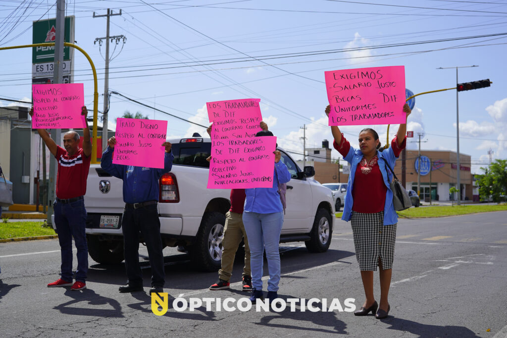 La mañana de este viernes 17 de octubre, un grupo de trabajadores del DIF mantuvieron una manifestación pacifica y ordenada frente a las instalaciones ubicadas sobre la avenida Colosio.