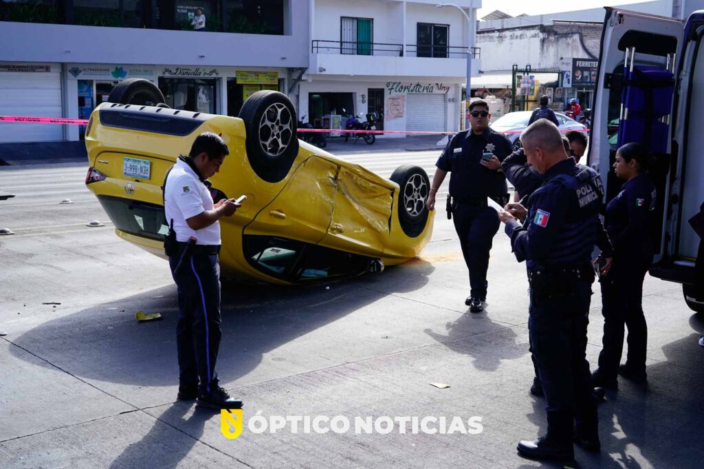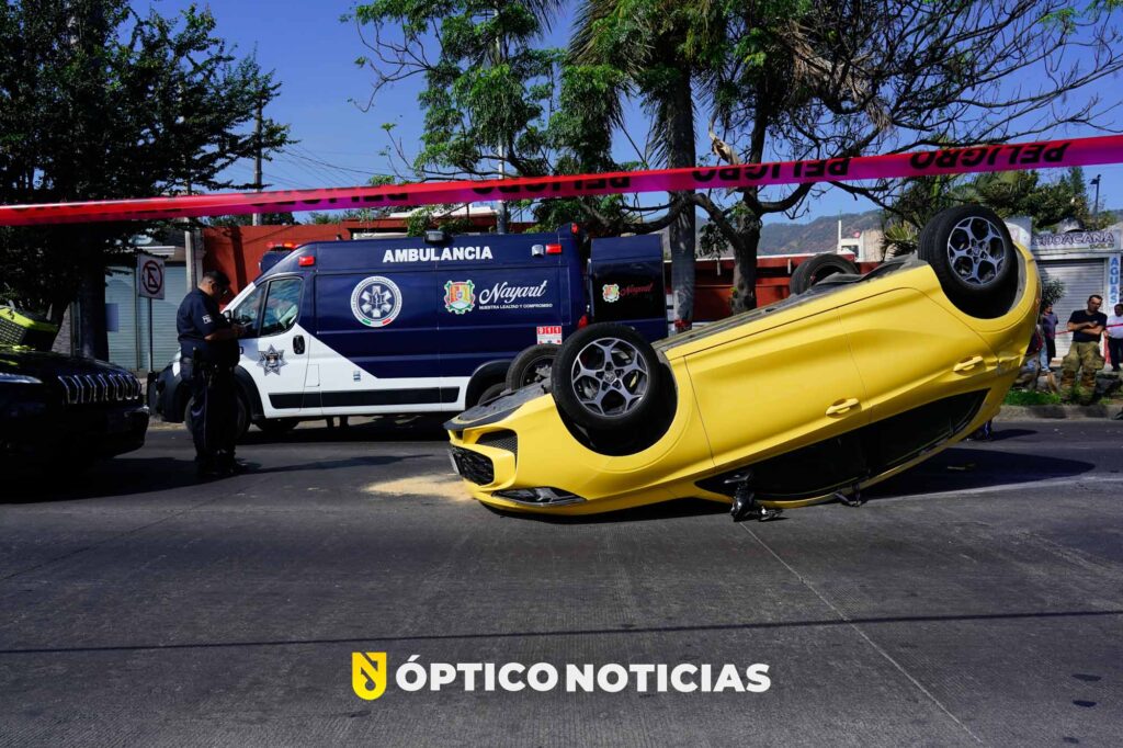 Tras choque en el Bulevar Tepic–Xalisco, vehículo termina volcado