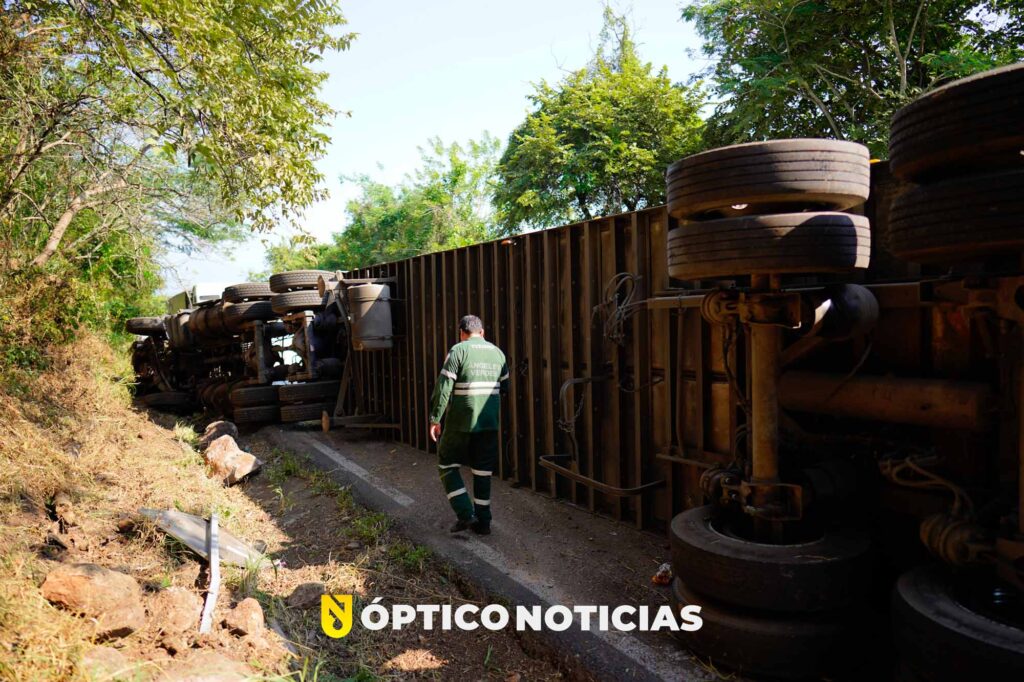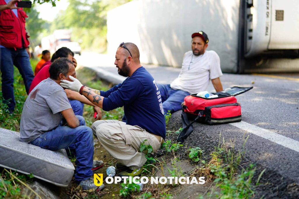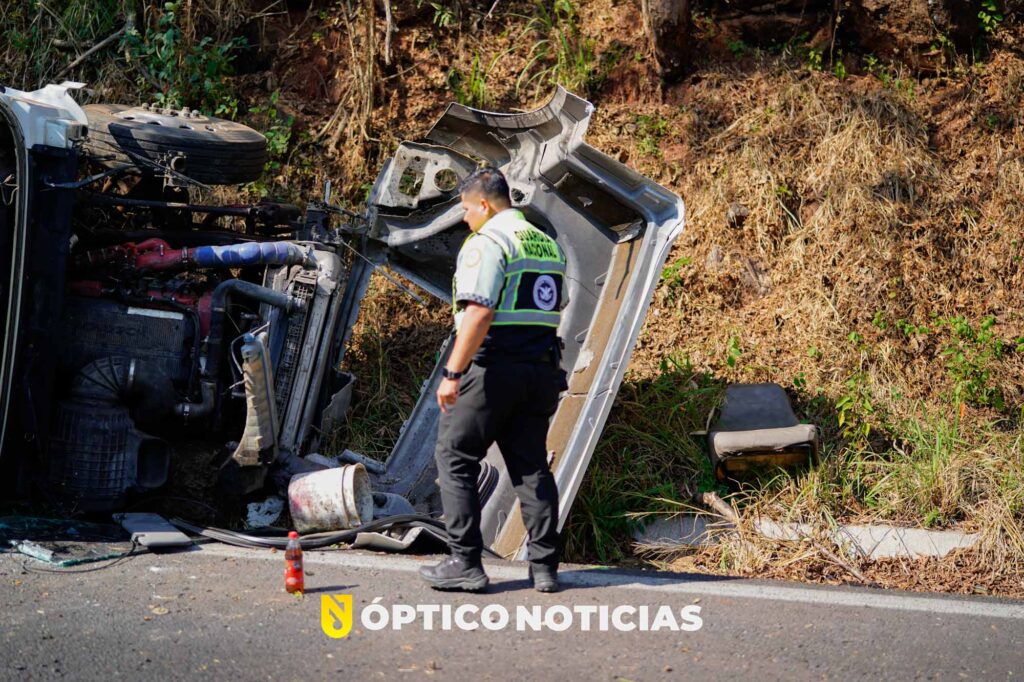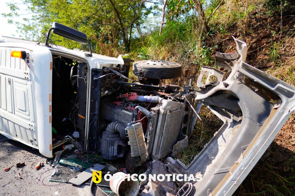 El conductor de esta pesada unidad resulta con fractura de tabique y posible fractura de costillas y fue atendido por rescatistas voluntarios de comisión nacional de emergencias, así como paramedicos de cruz roja, quienes realizaron su traslado para una mejor valoración.
